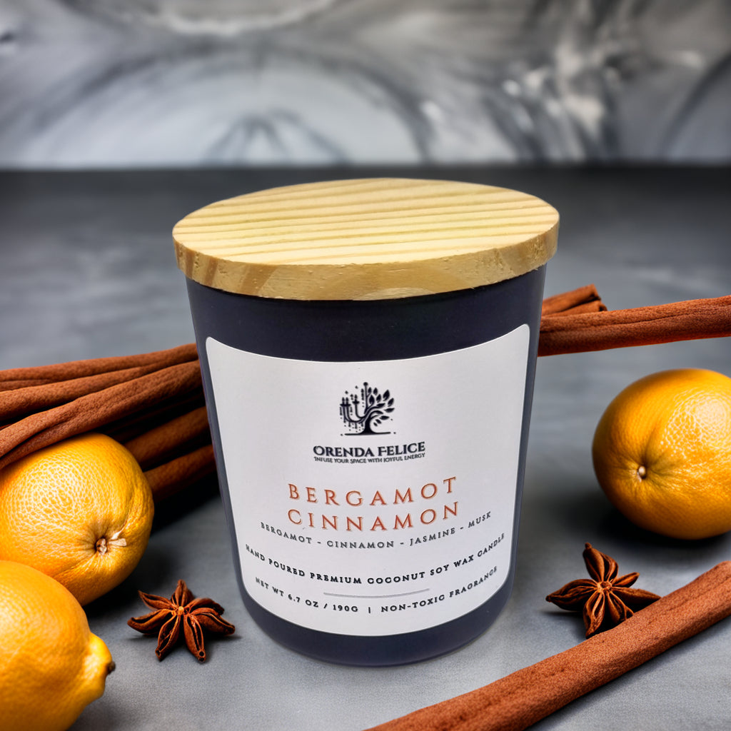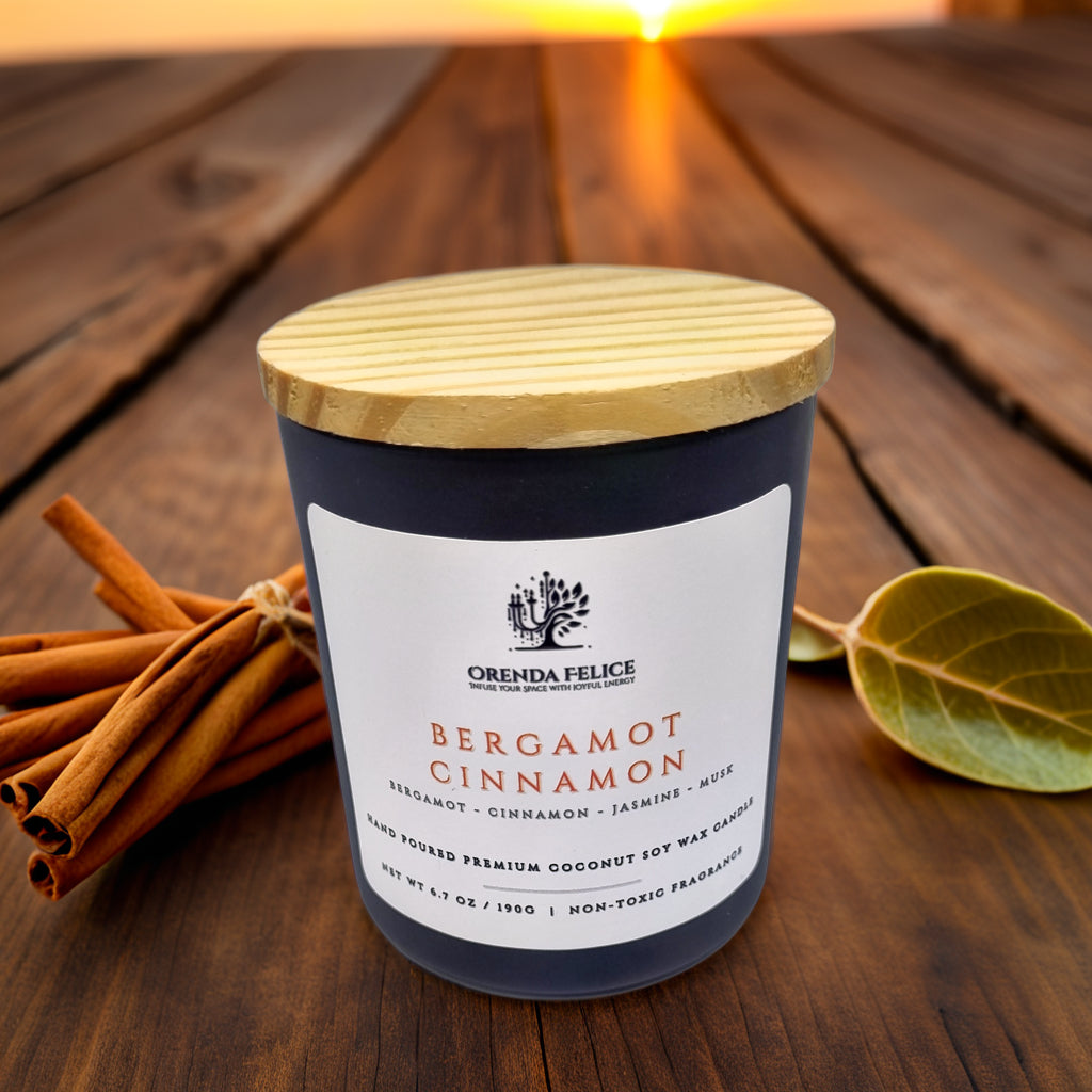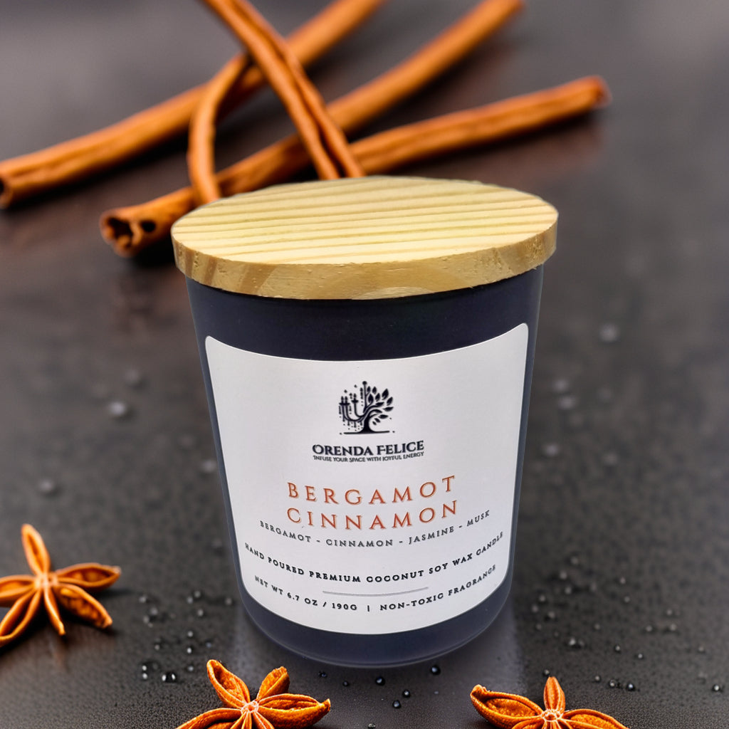 Experience the captivating aroma of our hand-poured premium coconut soy wax candle in the delightful Bergamot Cinnamon scent. This exquisite blend of zesty bergamot and comforting cinnamon creates a warm and inviting atmosphere, perfect for any room in your home.