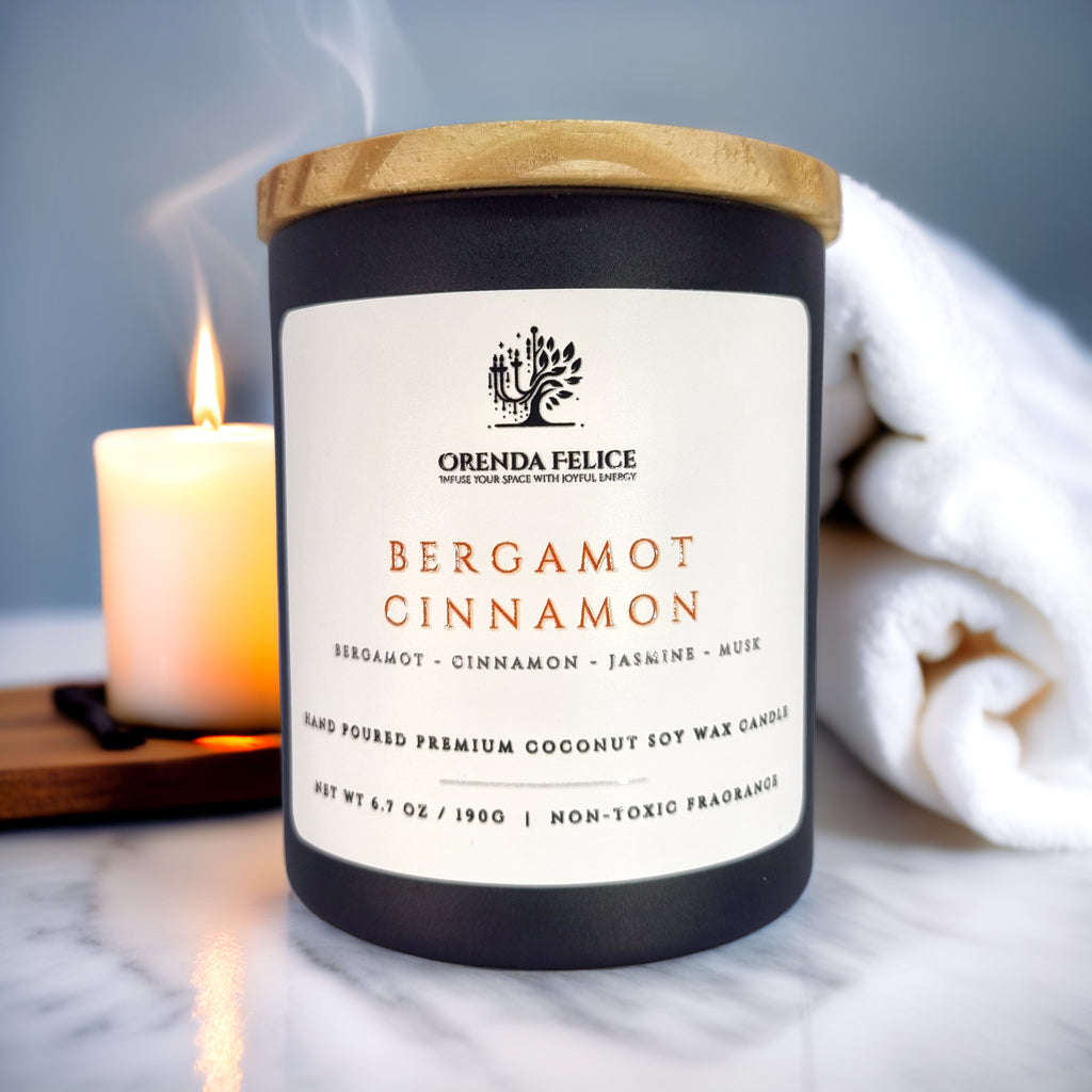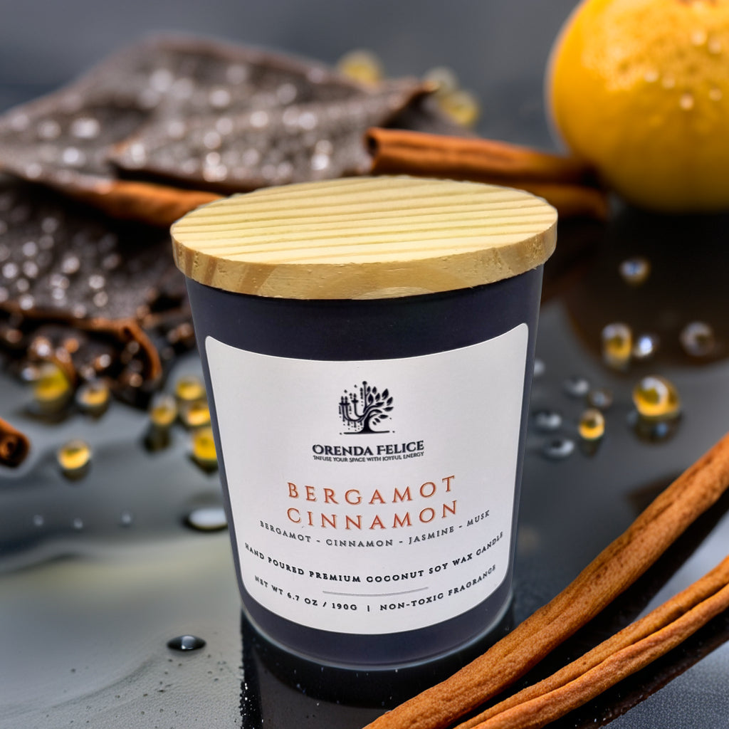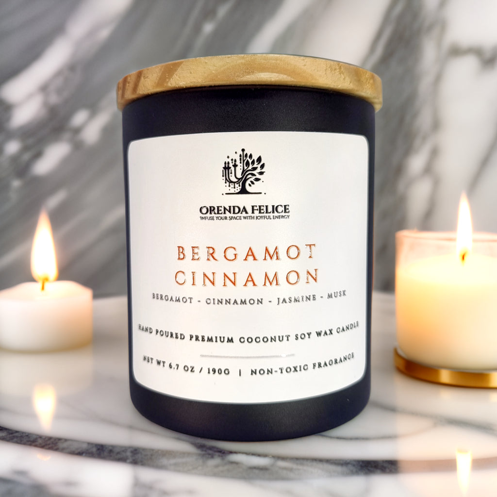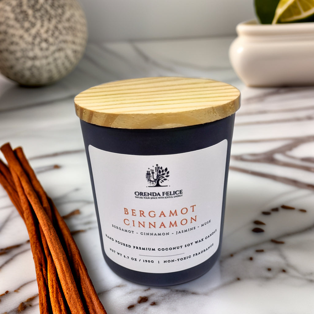 Experience the captivating aroma of our hand-poured premium coconut soy wax candle in the delightful Bergamot Cinnamon scent. This exquisite blend of zesty bergamot and comforting cinnamon creates a warm and inviting atmosphere, perfect for any room in your home.