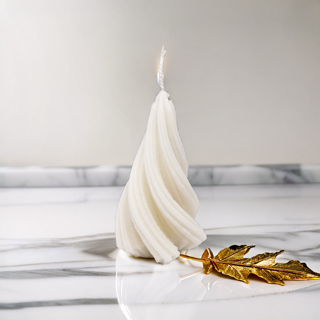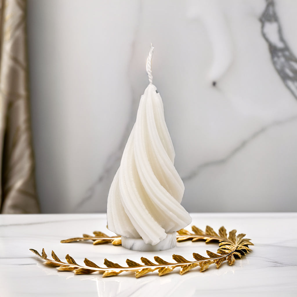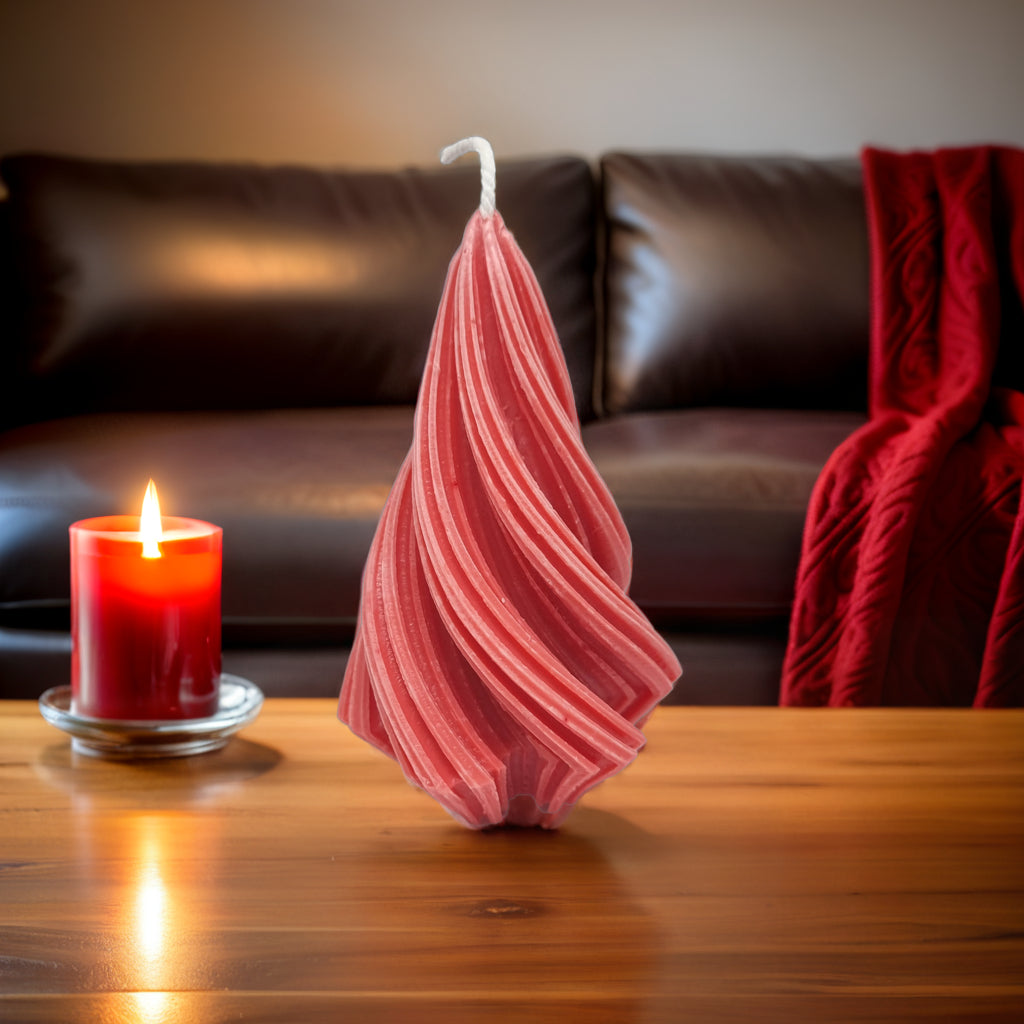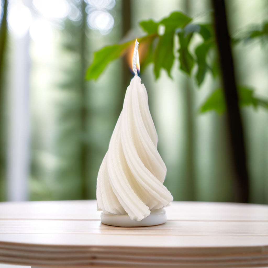 Add a modern and elegant twist to your holiday décor with our captivating Spiral Christmas Tree Soy Candle. This unique candle features a graceful, swirling design that's sure to catch the eye and spark conversation. It's the perfect blend of festive charm and contemporary style.
