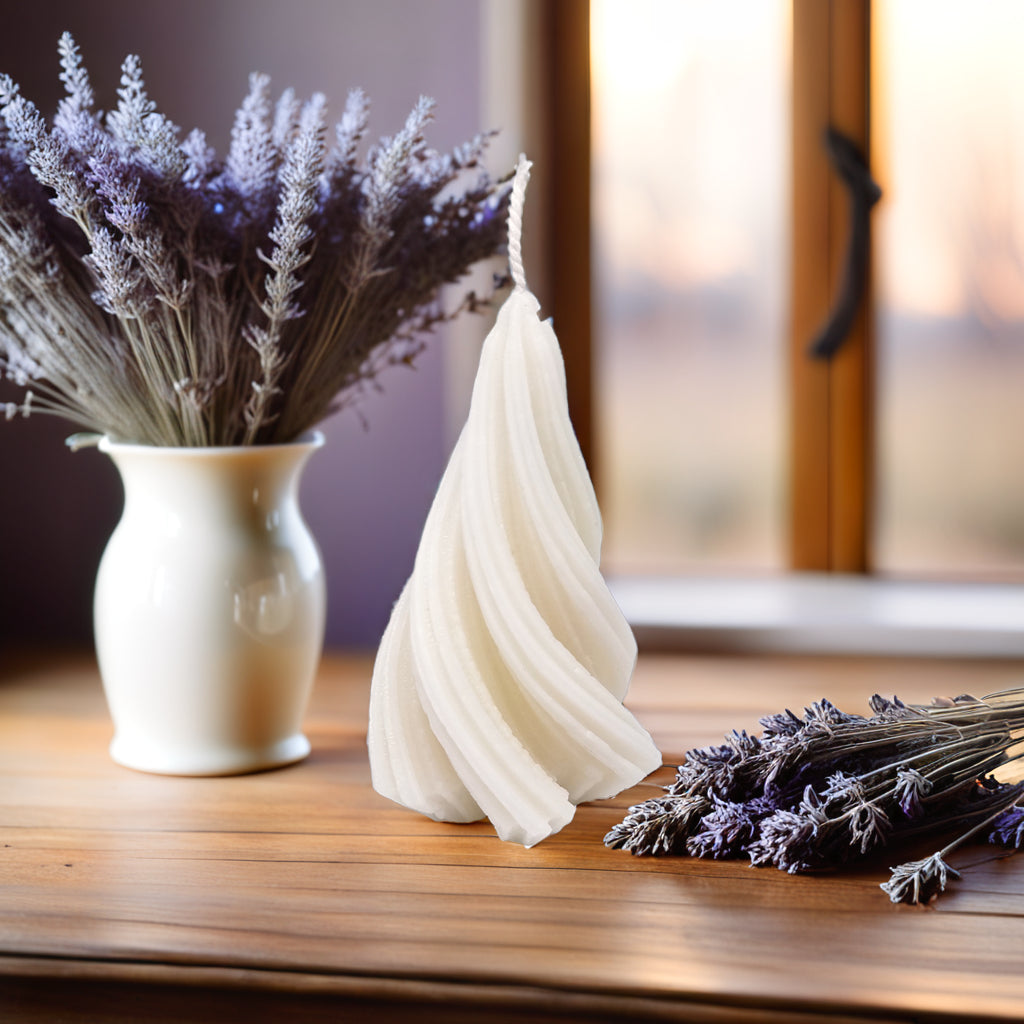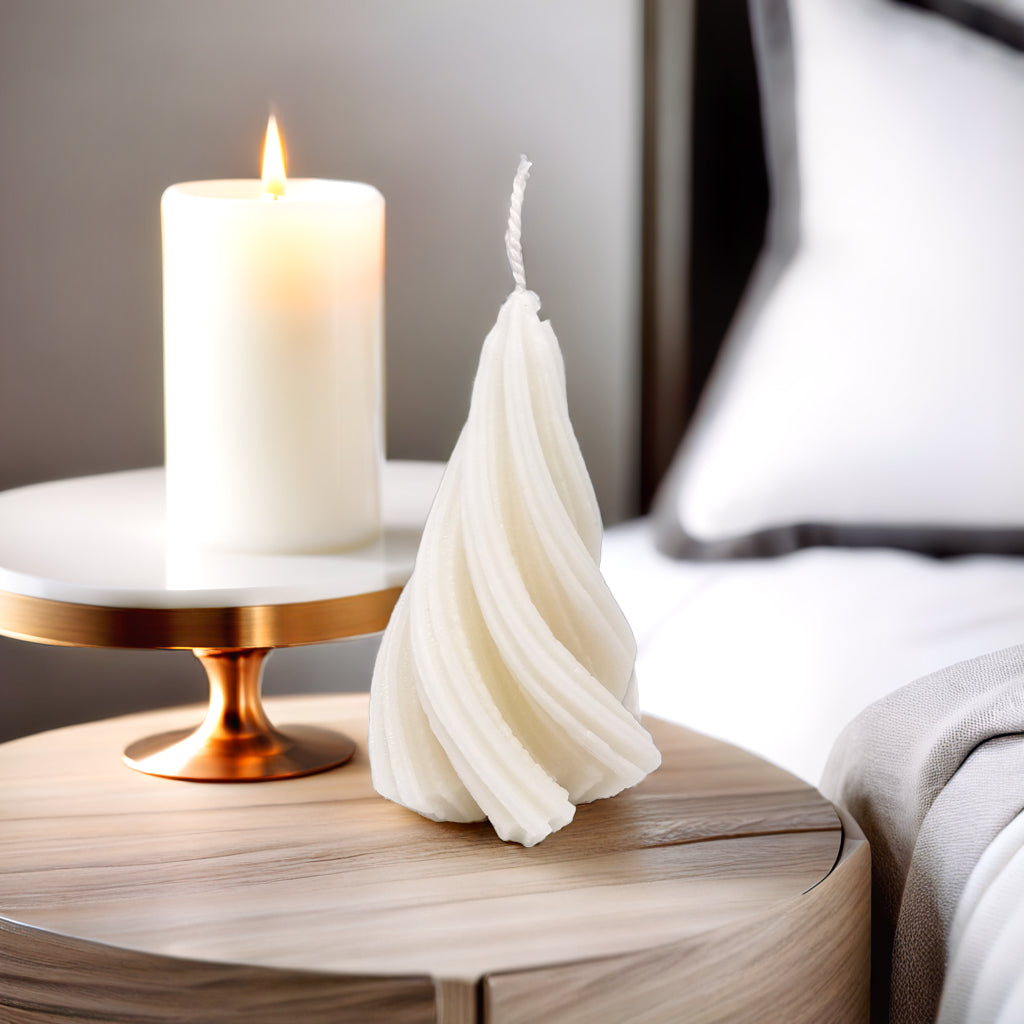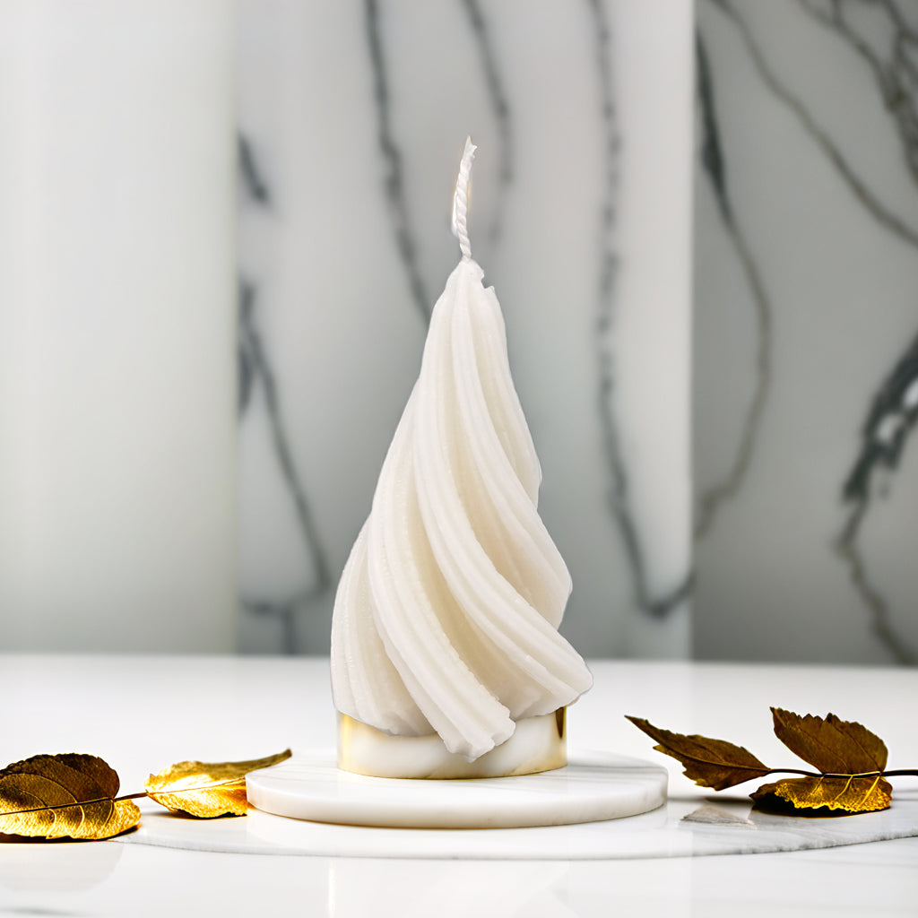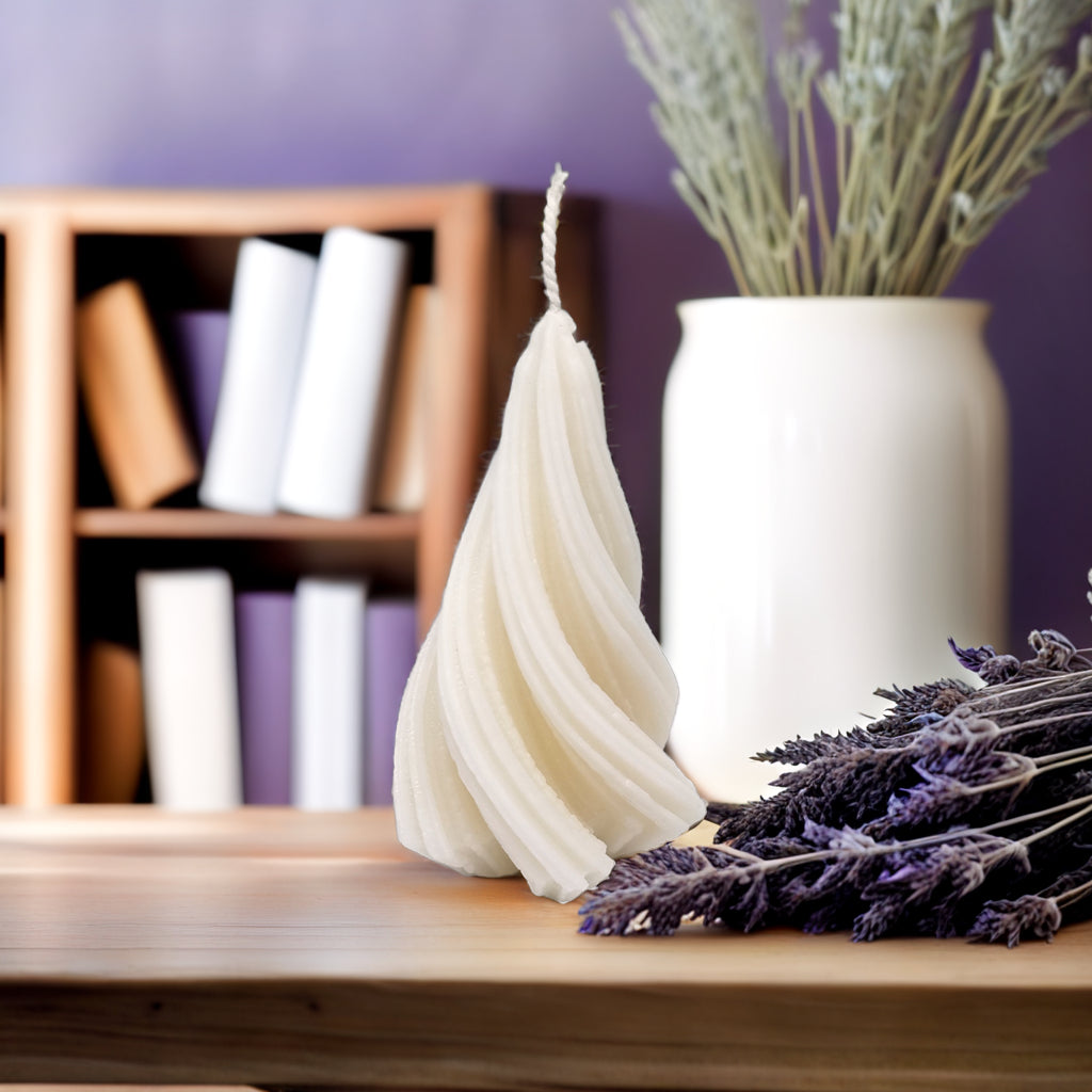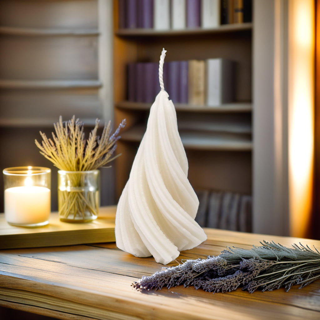 Add a modern and elegant twist to your holiday décor with our captivating Spiral Christmas Tree Soy Candle. This unique candle features a graceful, swirling design that's sure to catch the eye and spark conversation. It's the perfect blend of festive charm and contemporary style.